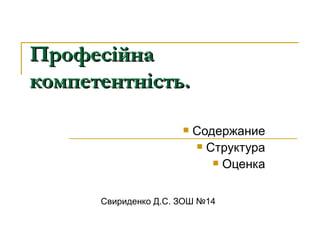 Під професійною компетентністюпедагога розуміють особистісні можливості учителя, які дозволяють йому самостійно й ефективно реалізовувати цілі педагогічного процесу. Для цього потрібно знати педагогічну теорію, уміти застосовувати її в практичній діяльності