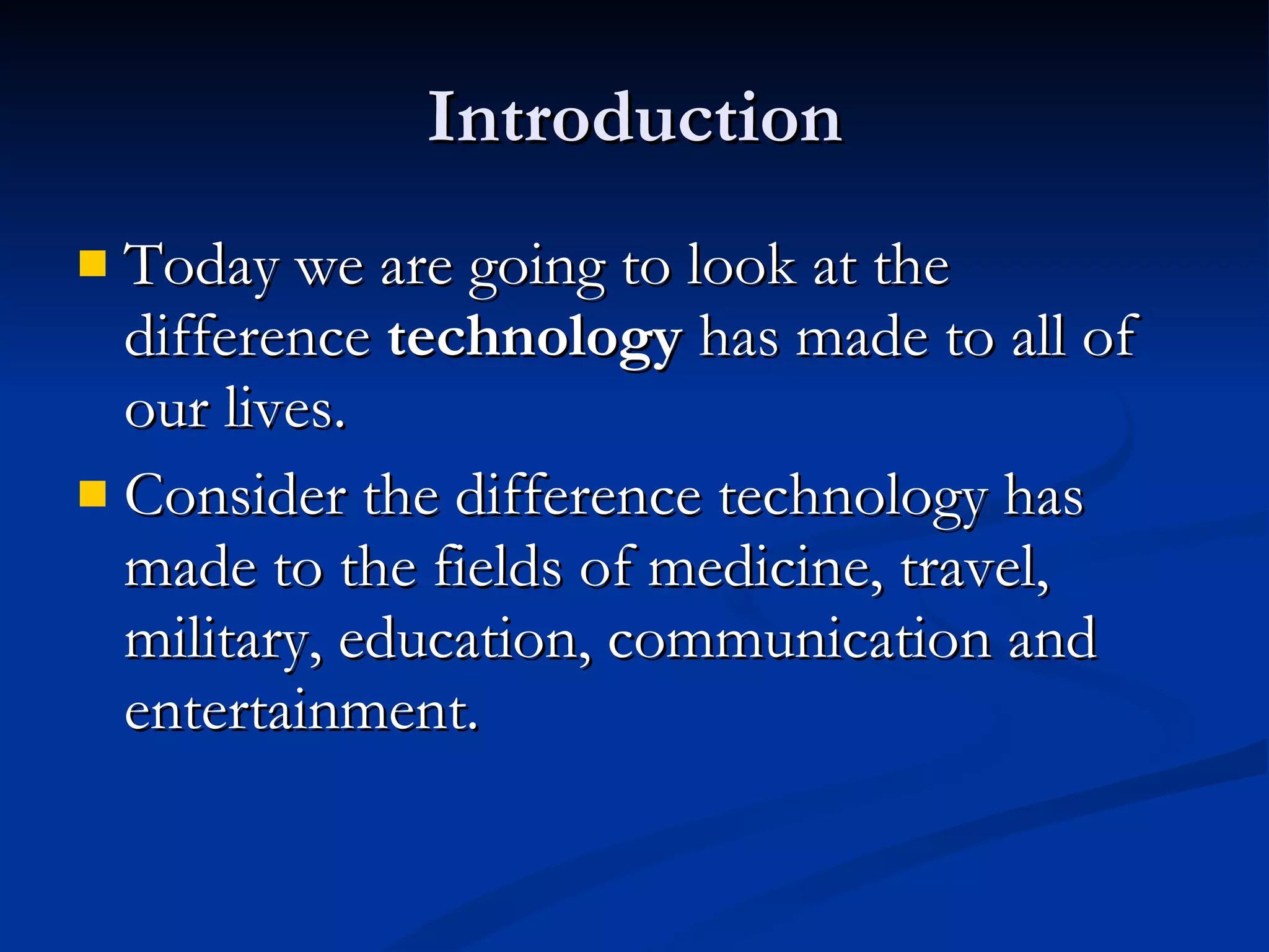 The document discusses how technology has changed society over time. It begins with definitions of technology and provides examples of early technological developments. It then examines major modern technological advances in fields like medicine, travel, military, education, and entertainment. The document concludes by asking students to create a PowerPoint presentation in pairs about a technology that has significantly impacted modern life, explaining why they chose it, how it works, how it has changed the world, what life was like before it, and its potential future.