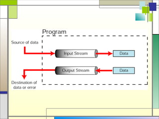 2) Files allow storing data permanently even after a program terminates. Java uses file streams for input and output between memory and disk files.