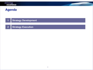This document outlines a company's strategy development and execution process. It discusses defining a unique position through trade-offs and fit among activities. It also covers building a vision with core values and purpose, reinventing the business model around customer value and profit, and applying blue ocean strategy by benchmarking internally and offering more value at lower cost. Finally, it discusses successful strategy execution through decision rights, information flow, using a balanced scorecard, transforming strategy to frontline action, and turning strategy into performance through simplicity, assumptions, language, priorities and monitoring.