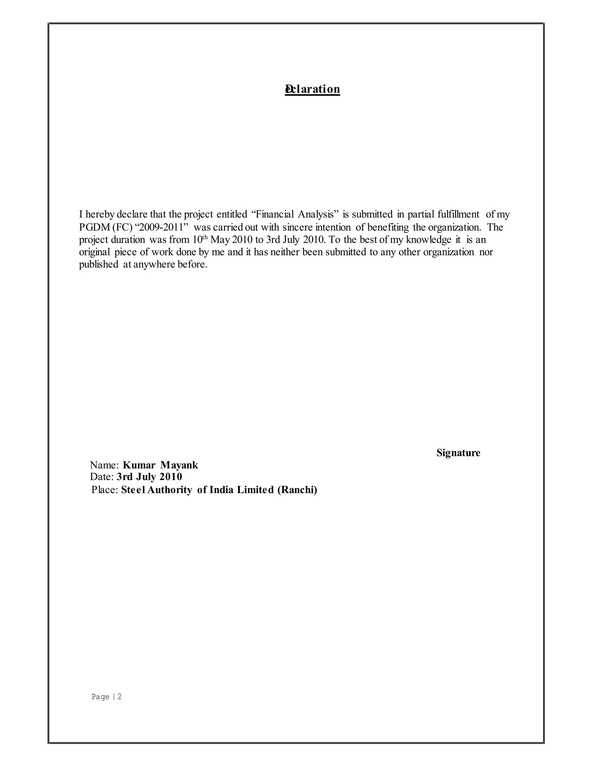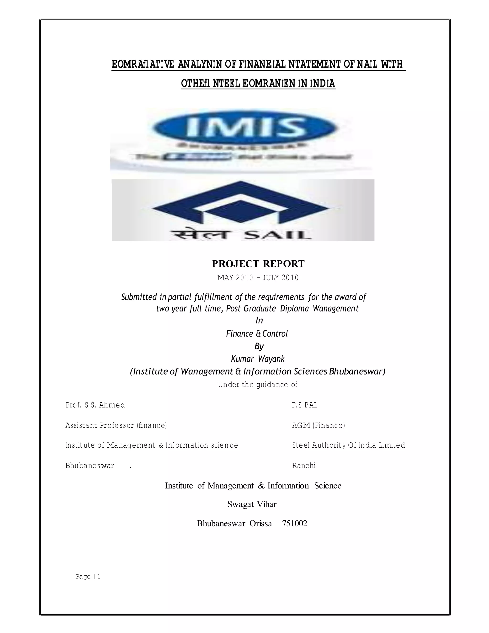 This document provides an overview and analysis of Steel Authority of India Limited (SAIL). It discusses SAIL's profile as India's largest steel producer, with integrated and special steel plants located across India. It outlines SAIL's products, marketing network, research centers, and position in the domestic steel industry. It also presents a SWOT analysis, identifying SAIL's strengths as its diversified product mix, large captive iron ore operations, skilled workforce, and research center, and weaknesses as dependence on imported coking coal and higher-than-average manpower costs. The document serves as the basis for a comparative financial analysis of SAIL against other Indian steel companies.