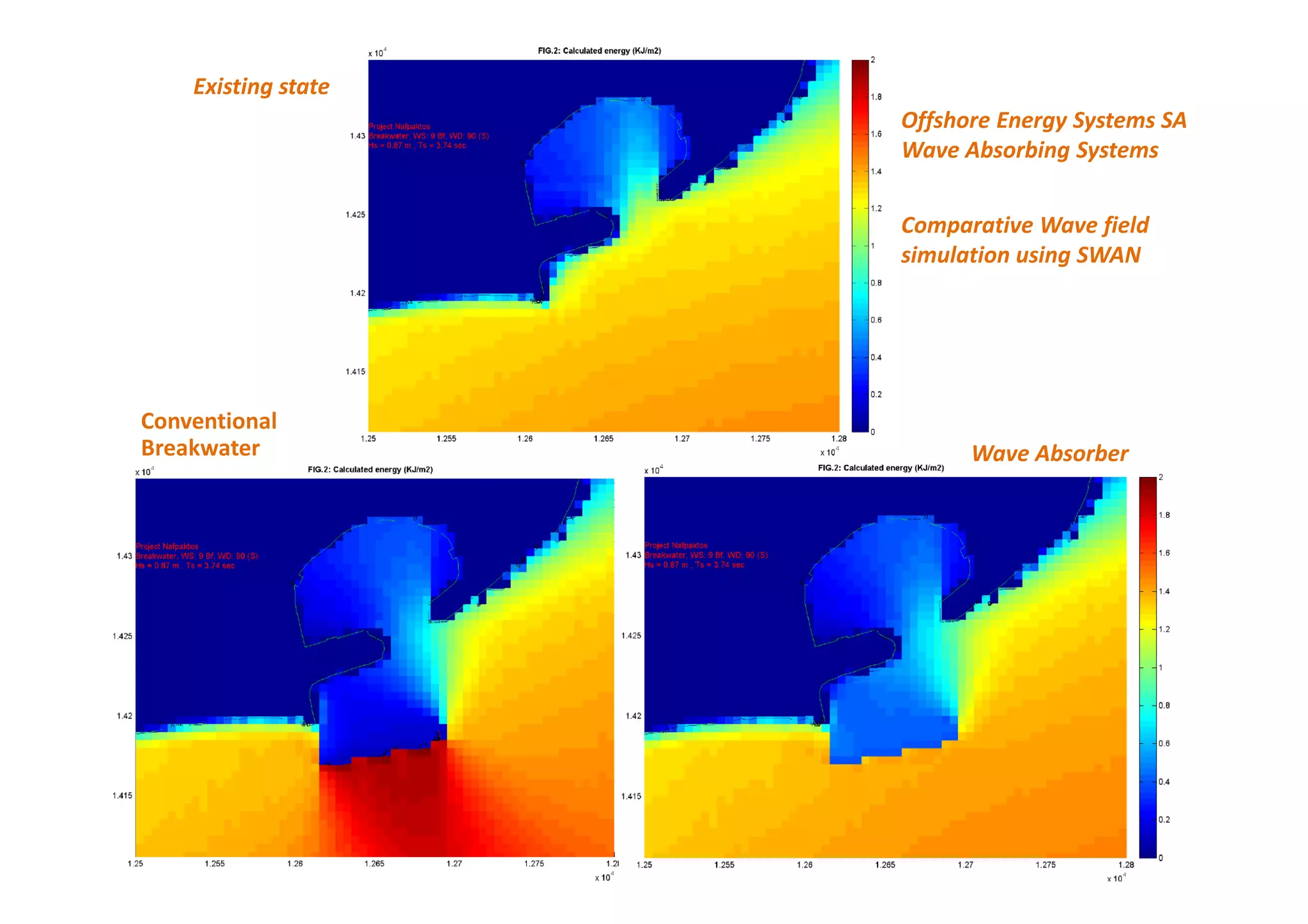 The document discusses existing state conventional breakwater systems and their applications in offshore energy. It focuses on wave absorbing systems and presents a comparative wave field simulation using the SWAN model. The findings aim to enhance the understanding of wave absorber performance in these energy systems.