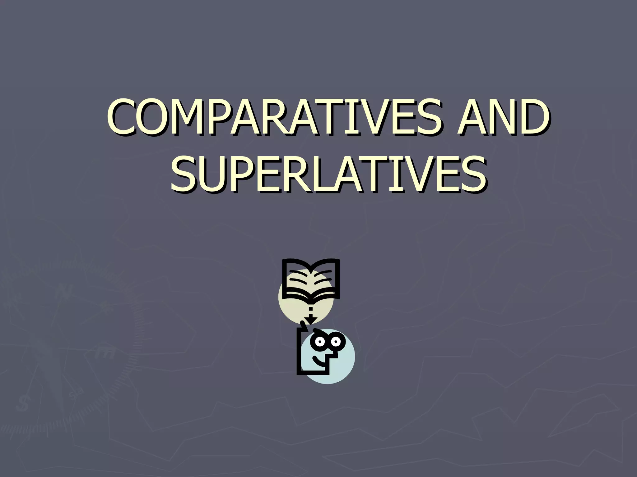 The document discusses comparatives and superlatives in English. It explains that comparatives compare two items using suffixes like -er, while superlatives compare three or more items using suffixes like -est. It provides rules for forming comparatives and superlatives depending on the number of syllables in the adjective and whether it ends in a consonant or vowel sound. Exceptions for irregular adjectives are also noted. Examples are given throughout to illustrate the different forms.