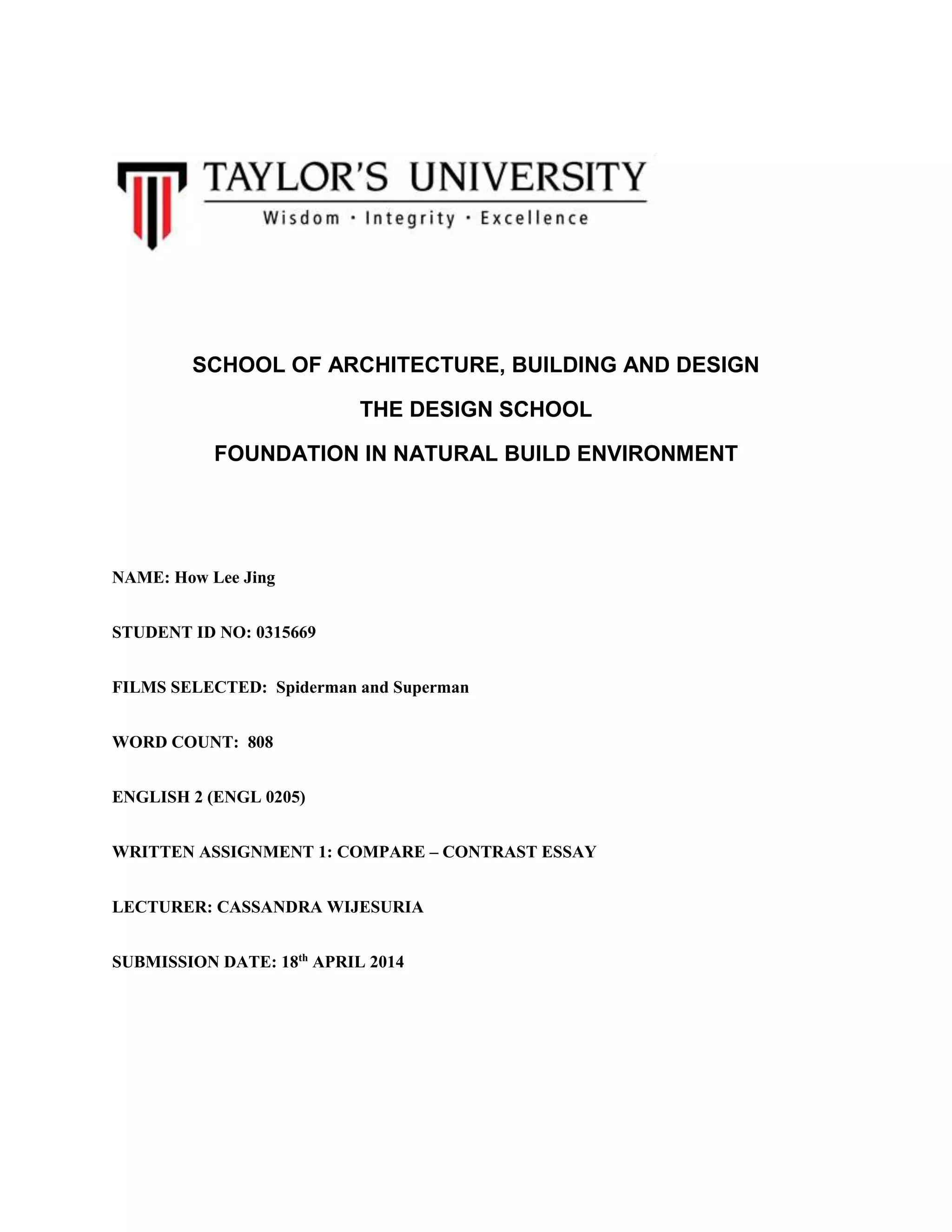 (1) The document compares the superheroes Spiderman and Superman.