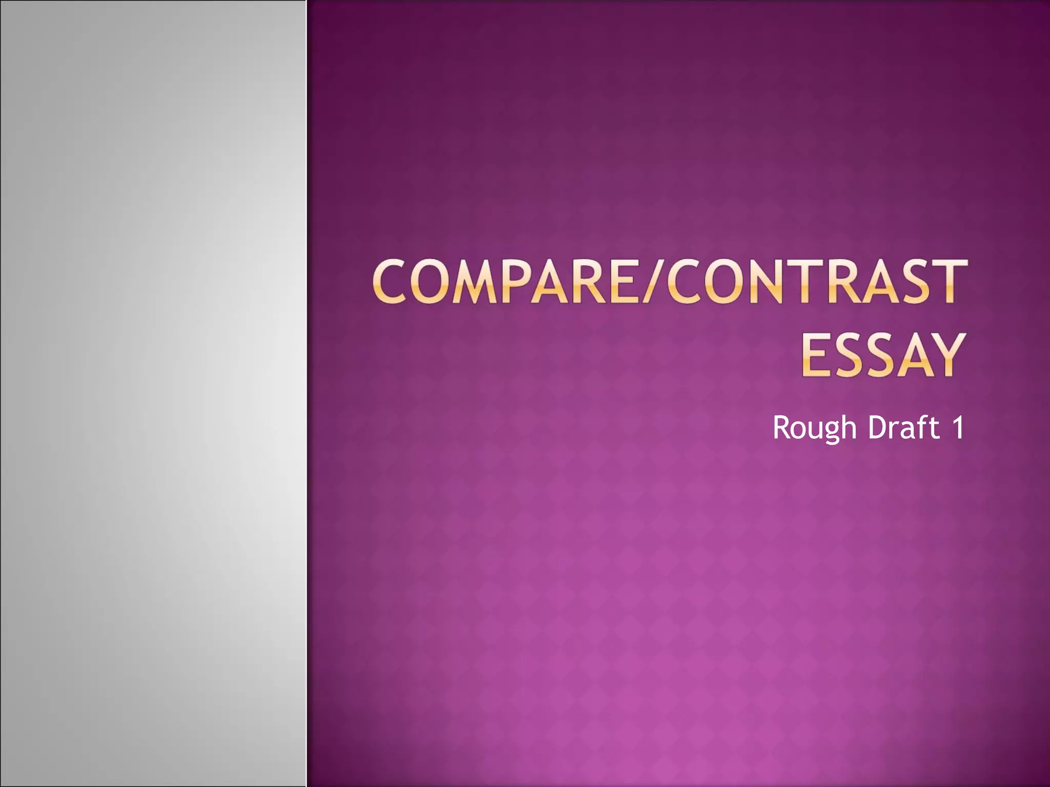 This document contains a checklist for a rough draft of a compare and contrast essay. It asks questions to ensure the draft has a heading, title, five paragraphs, is handwritten, uses black or blue pen, and answers questions in complete sentences in red pen. It also checks that the introduction provides background and a thesis stating three categories for comparison that each body paragraph addresses one category with explanation of at least one similarity and difference. It asks if one subject is judged better and rates the overall essay out of six. It instructs revising the rough draft and typing a second draft of at least 750 words.