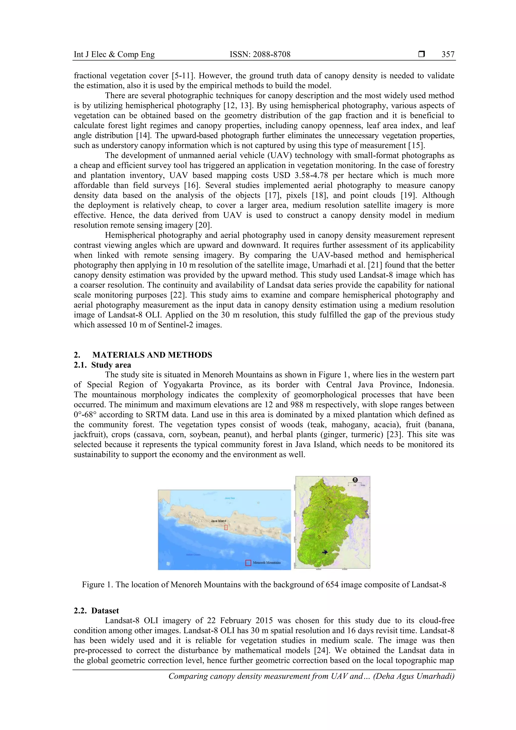 This study compares canopy density measurements obtained from unmanned aerial vehicles (UAV) and hemispherical photography, emphasizing their complementary roles in estimating canopy density using Landsat-8 imagery. It finds strong correlations between UAV measurements and satellite-derived vegetation indices, particularly NDVI, making UAV a more reliable tool for canopy density assessment. The research highlights that UAV offers a cost-effective means of covering difficult terrain for environmental monitoring.