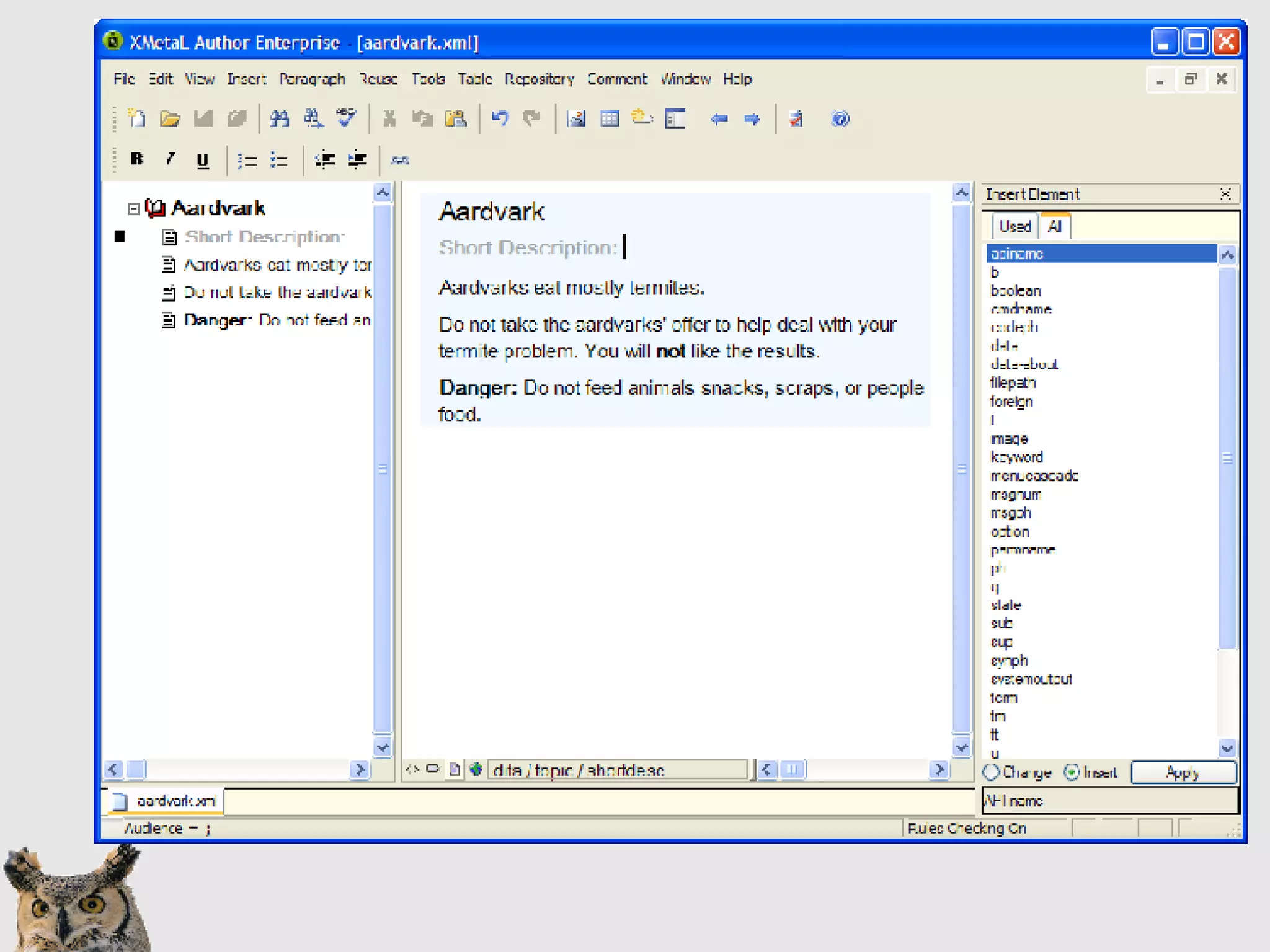 The document compares DITA support in FrameMaker and XMetaL. FrameMaker is better for print/PDF output and has WYSIWYG authoring, while XMetaL is better for DITA authoring and output-neutral formatting. Neither tool is a clear winner, and the best choice depends on priorities like print needs, author control level, and specialization requirements. The presenter provides an overview of key features in each tool for authoring, output generation, cross-references, and more.