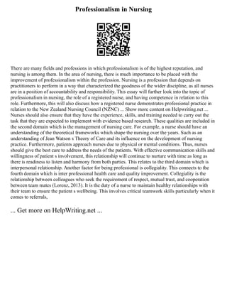 improvement of professionalism within the profession. Nursing is a profession that depends on