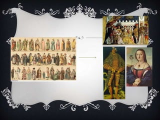 The document compares social and cultural aspects of the Middle Ages and Renaissance. During the Middle Ages, the Church dominated politics and society, women had limited roles and no rights, and fashion was simple. The Renaissance brought changes like more empowerment for women, the growth of education, states having more power than the Church, and the emergence of more elaborate fashion. Overall, the Renaissance marked a transition to a new way of thinking and a society less dominated by the Church.