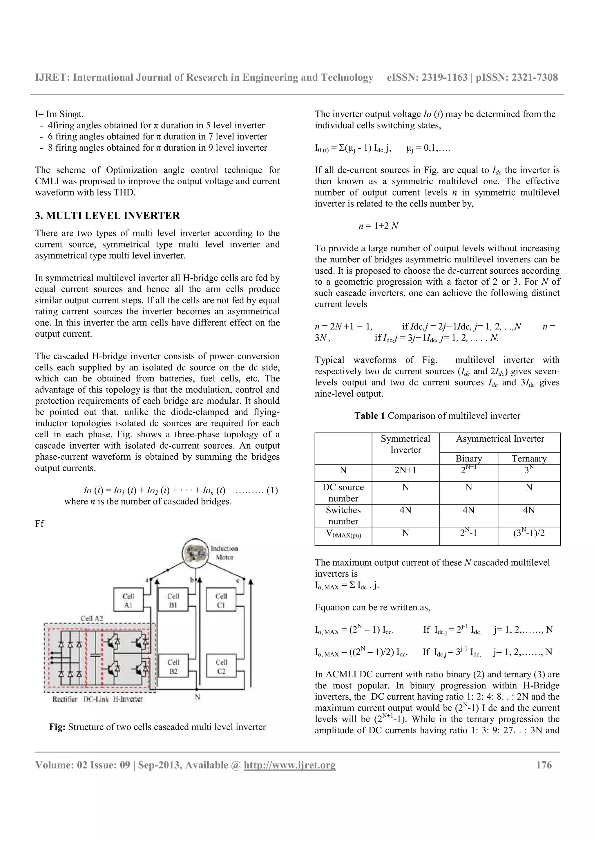 This document compares symmetrical and asymmetrical cascaded current source multilevel inverters. It discusses their structures, operational characteristics, advantages, and simulation results. Symmetrical multilevel inverters have equal current sources, while asymmetrical have unequal sources in a geometric progression. For the same number of components, asymmetrical inverters can produce more output levels and higher voltages with lower total harmonic distortion. Simulation results show the output waveform and THD for different configurations, confirming asymmetrical inverters have better performance.