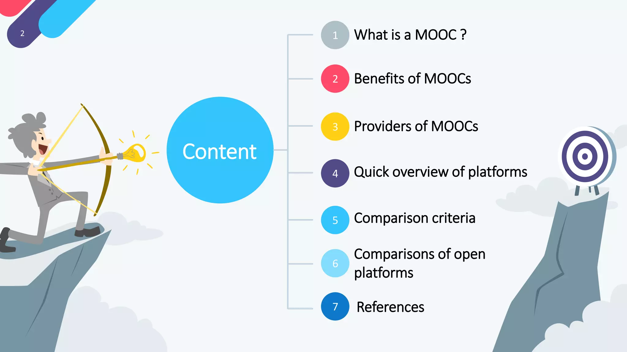 2. Coursera partners with universities and organizations to provide over 1,872 free and paid courses. Udemy allows individual instructors and has over 40,000 courses, some free and some paid. Udacity focuses on interactive courses for beginners in topics like computer science. EdX provides courses from universities like Harvard and schedules future courses.