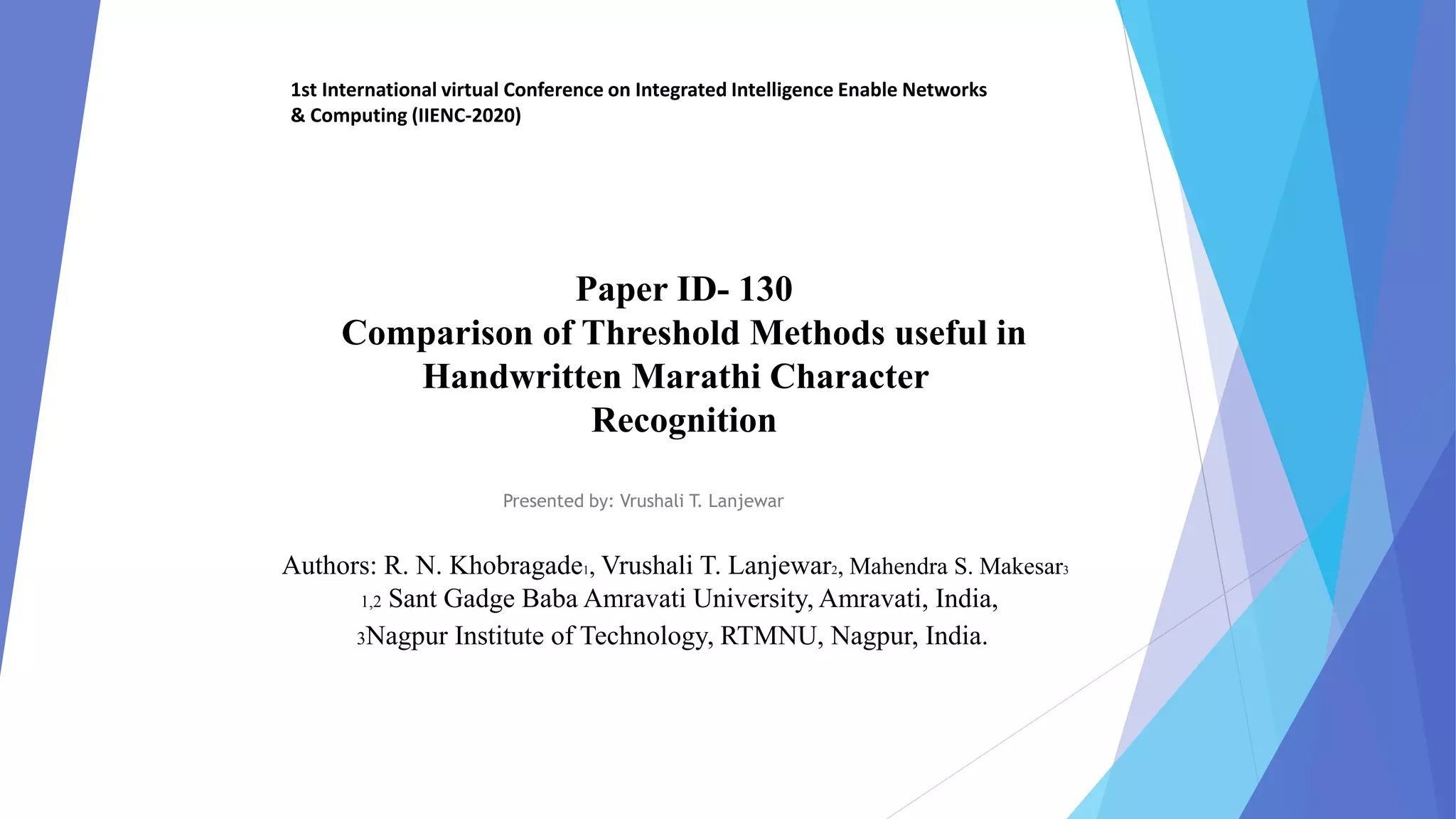 The document discusses various threshold methods for handwritten Marathi character recognition, detailing global and local thresholding techniques and their effectiveness. It highlights issues associated with thresholding, such as noise and pixel reliability, and compares multiple methods including Otsu's multi-level thresholding. The study concludes that local thresholding is effective for segmenting handwritten text images and suggests potential for feature extraction improvements.