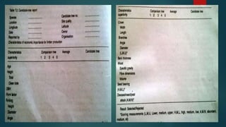 This document describes the comparison-tree method for selecting superior trees for breeding programs. The method involves comparing candidate trees to nearby comparison trees of similar age and site conditions to account for environmental influences. If the candidate tree is superior to the comparison trees for traits of interest like growth, form, or disease resistance, it is designated as a plus tree suitable for the breeding program. Guidelines are provided for selecting stands and individual trees to identify the most genetically superior specimens while maintaining genetic diversity.