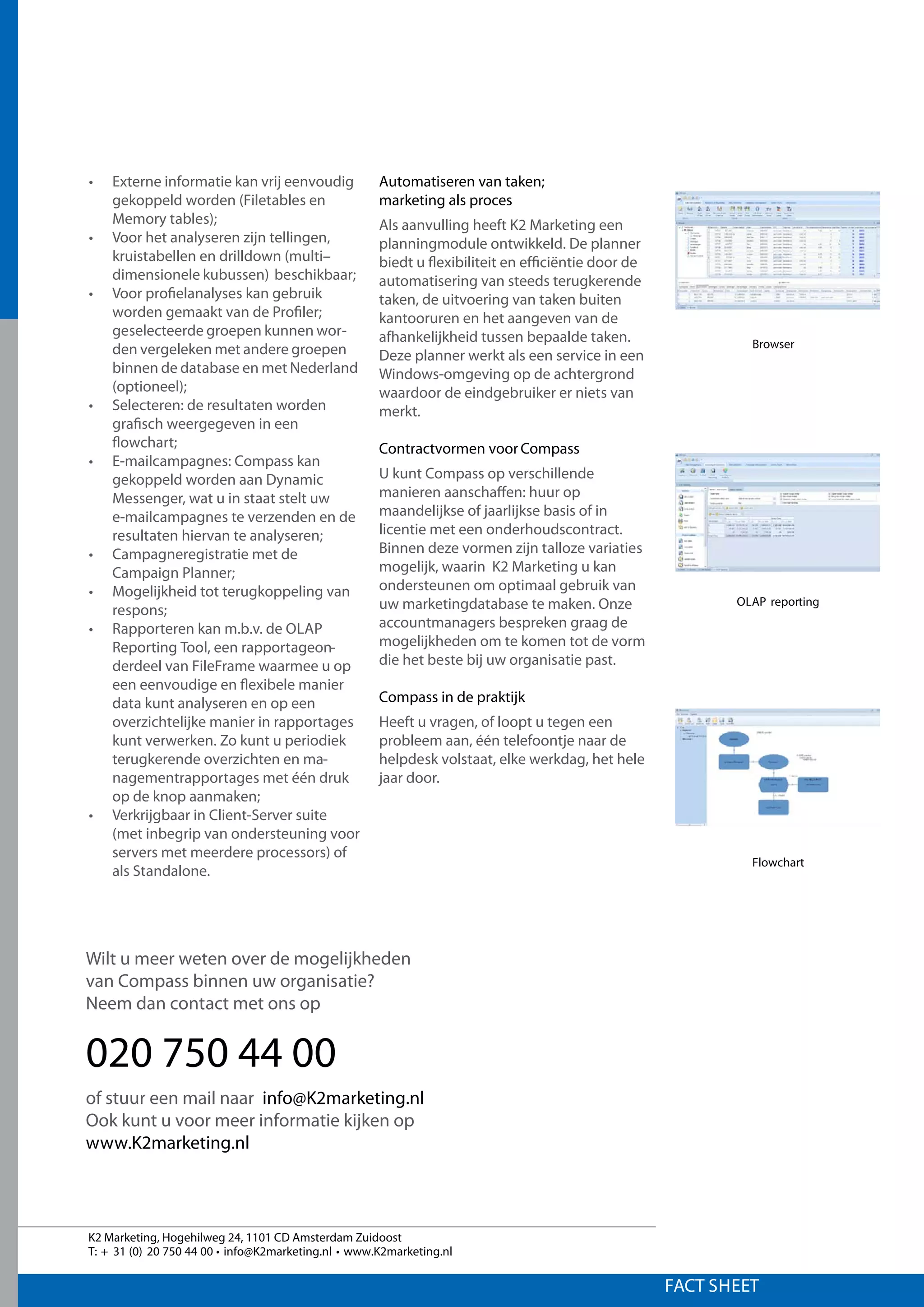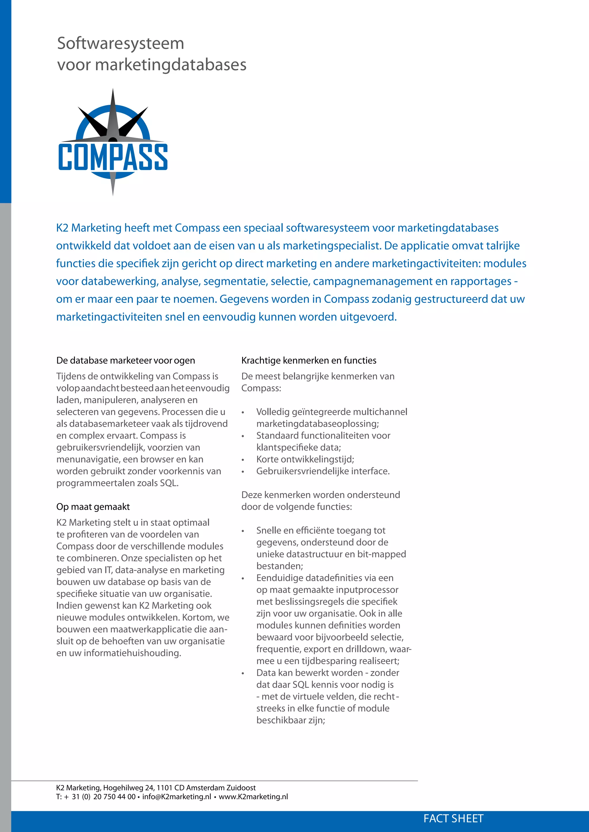 K2 Marketing heeftmet Compass een speciaal softwaresysteem voor marketingdatabases