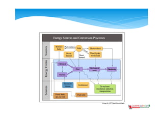 The document discusses various aspects of energy analytics, including power generation, transmission and distribution, and market analysis for different energy sources. It highlights methods for simulating electrical loads, forecasting wind and solar power, and assessing the condition of electrical grids. Additionally, it provides examples of research and technology initiatives aimed at improving energy efficiency and decision-making in the energy sector.