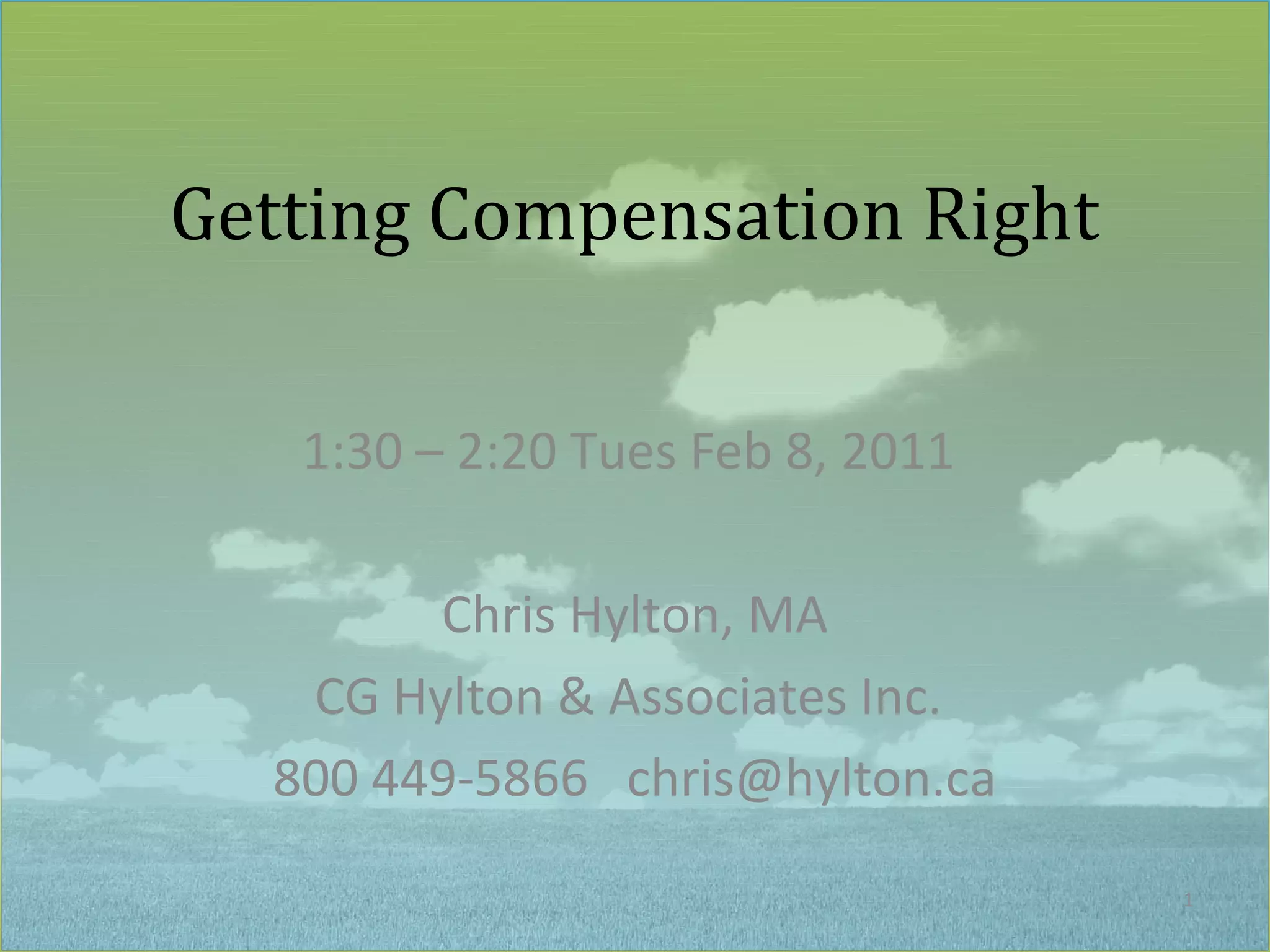 The document discusses the importance of developing an effective compensation and benefits plan tailored to an organization's mission and culture. It covers various types of compensation, including cash and non-cash options, strategies for establishing a salary grid, and insights on competitive benefits packages. Additionally, it highlights the critical role of consultants in assisting organizations with compensation issues and benefits planning.