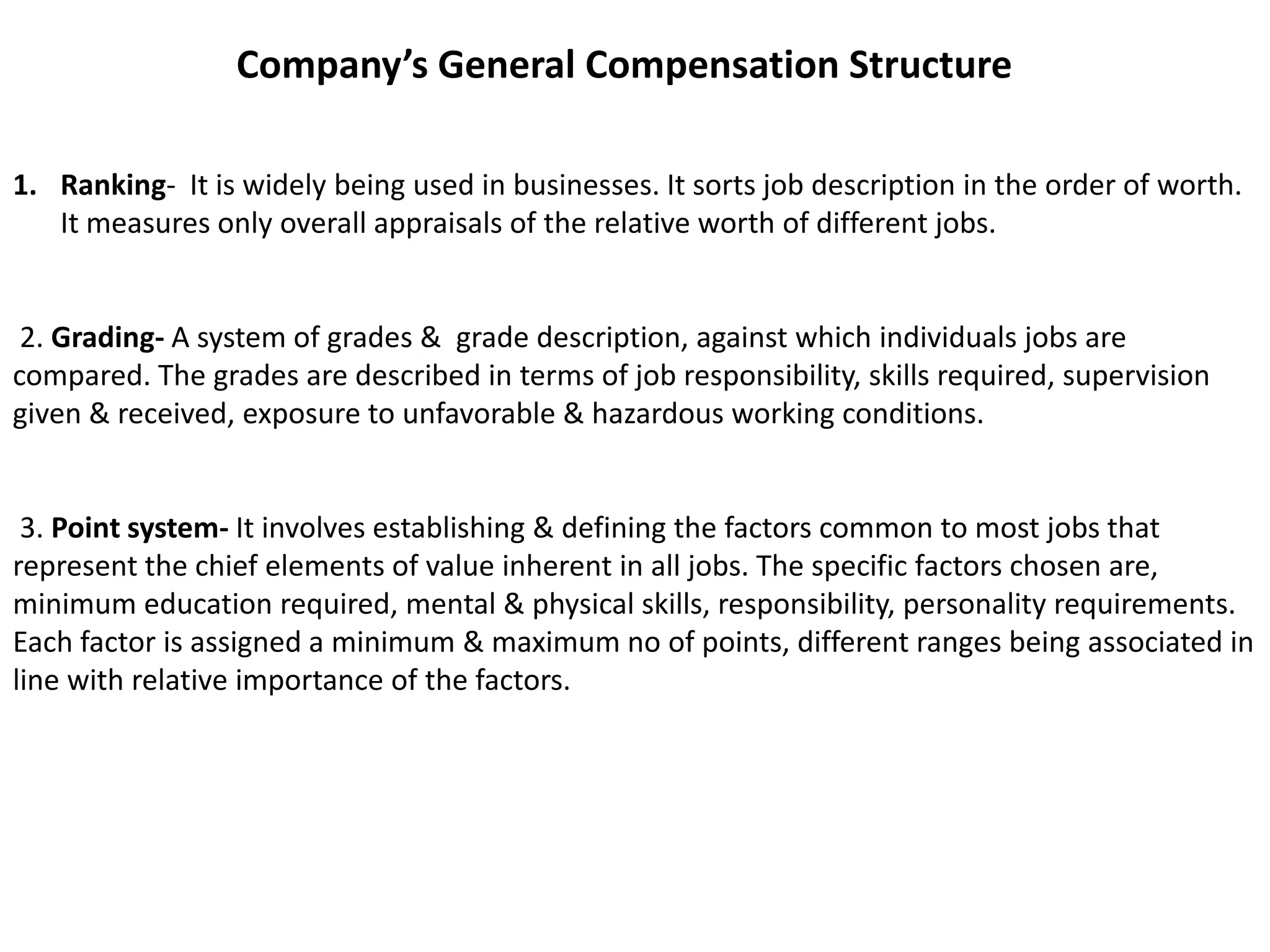 This document outlines a sales compensation plan. It discusses different methods for structuring compensation, including ranking, grading, and point systems. It also covers determining compensation levels, common compensation elements like salary, commission, bonuses, and expenses. Finally, it describes different types of plans like straight salary, straight commission, and salary plus commission plans. Fringe benefits and bonuses are also discussed as additional rewards.