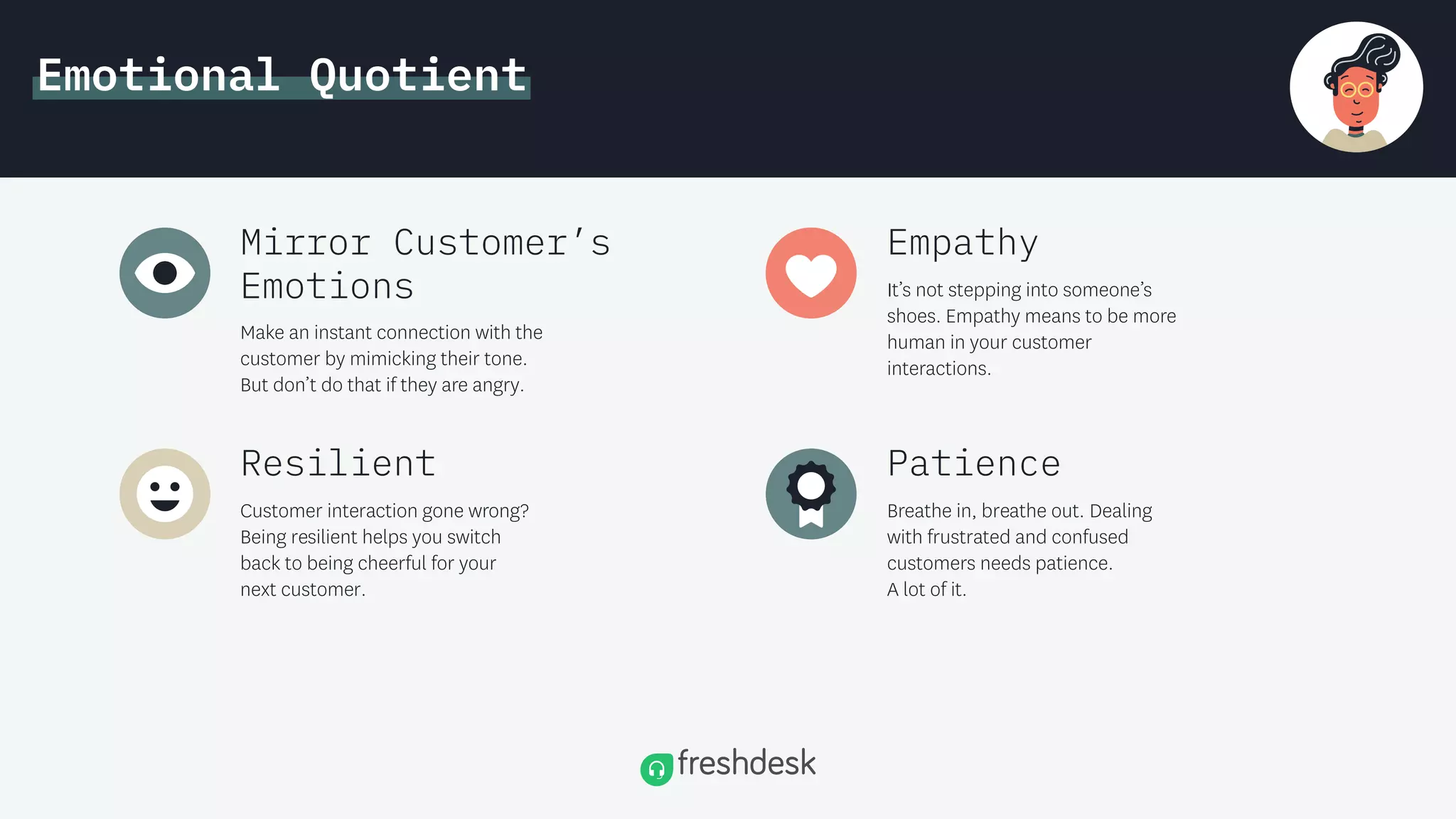 An ideal customer support agent should possess strong emotional intelligence, including resilience, empathy, and patience, to effectively connect with customers and handle their frustrations. Key skills also involve active listening, problem-solving, time management, and a deep understanding of the product to provide clear and proactive solutions. Embracing responsibility and maintaining composure under pressure are essential for ensuring customer satisfaction.