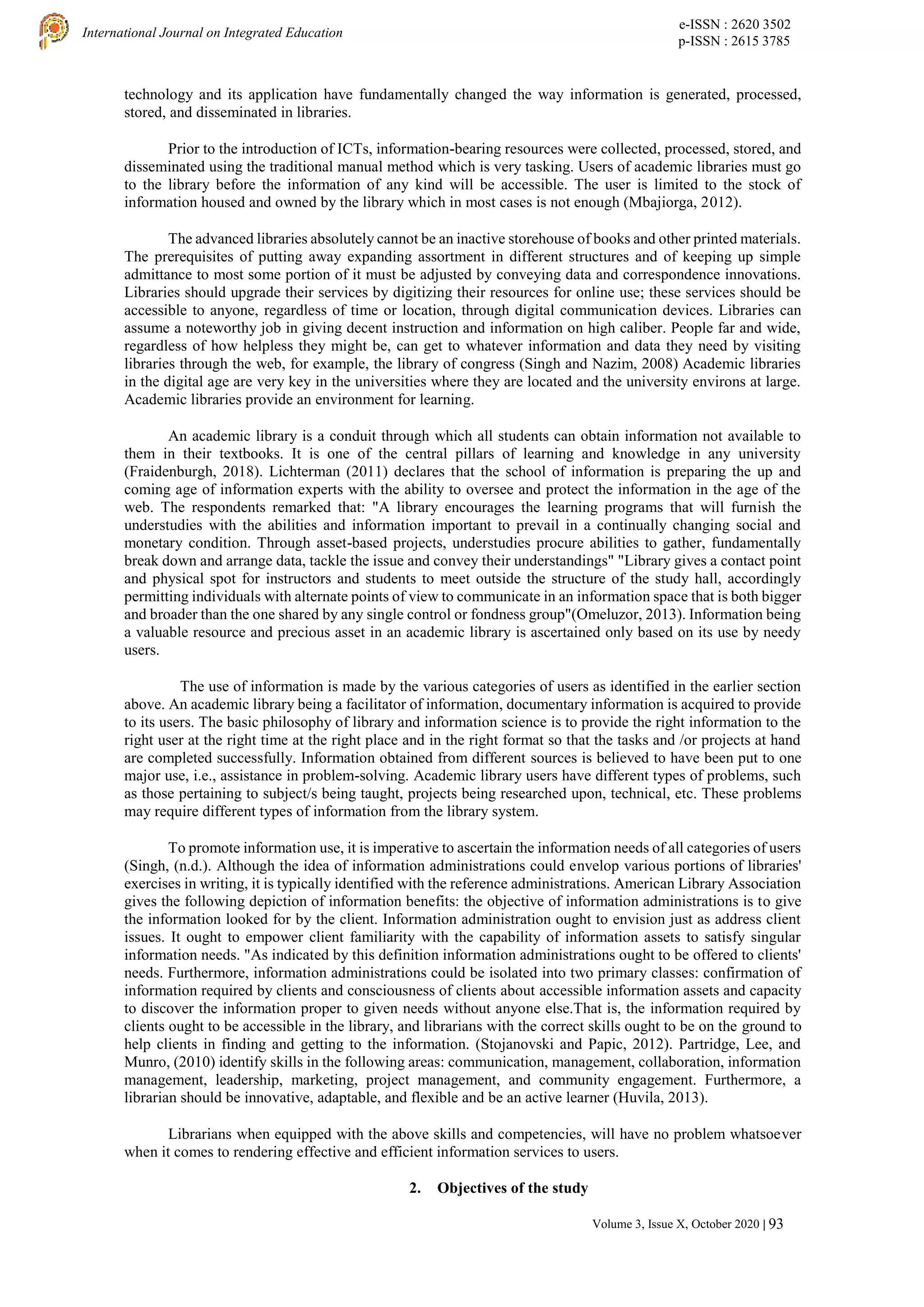 This study examines the role of librarians' competencies in information service delivery at Delta State University and Federal University of Petroleum Resources. The findings indicate that librarians possess significant skills in ICT, customer service, and interpersonal communication, which enhance their effectiveness in service delivery. Recommendations include the necessity for ongoing training to further develop these competencies among librarians.