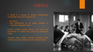 1. Competition between organizations provides benefits like promoting growth, advancing civilization, and forcing creativity, but can also lead to anti-competitive practices.