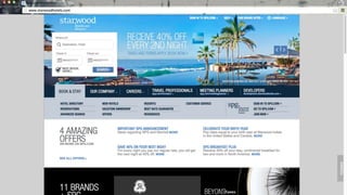 The document provides a summary and analysis of various hotel and vacation rental websites. It begins by analyzing the Turyaa Hotels website and provides details on the design, navigation, identity, and interface. It then analyzes websites for Starwood Hotels, Airbnb, The Lalit, and Windflower resorts. For each, it examines things like page load time, visual design, navigation, use of imagery, and how they communicate their brand identity and primary offerings. The document aims to understand how these companies present themselves online through a website audit.