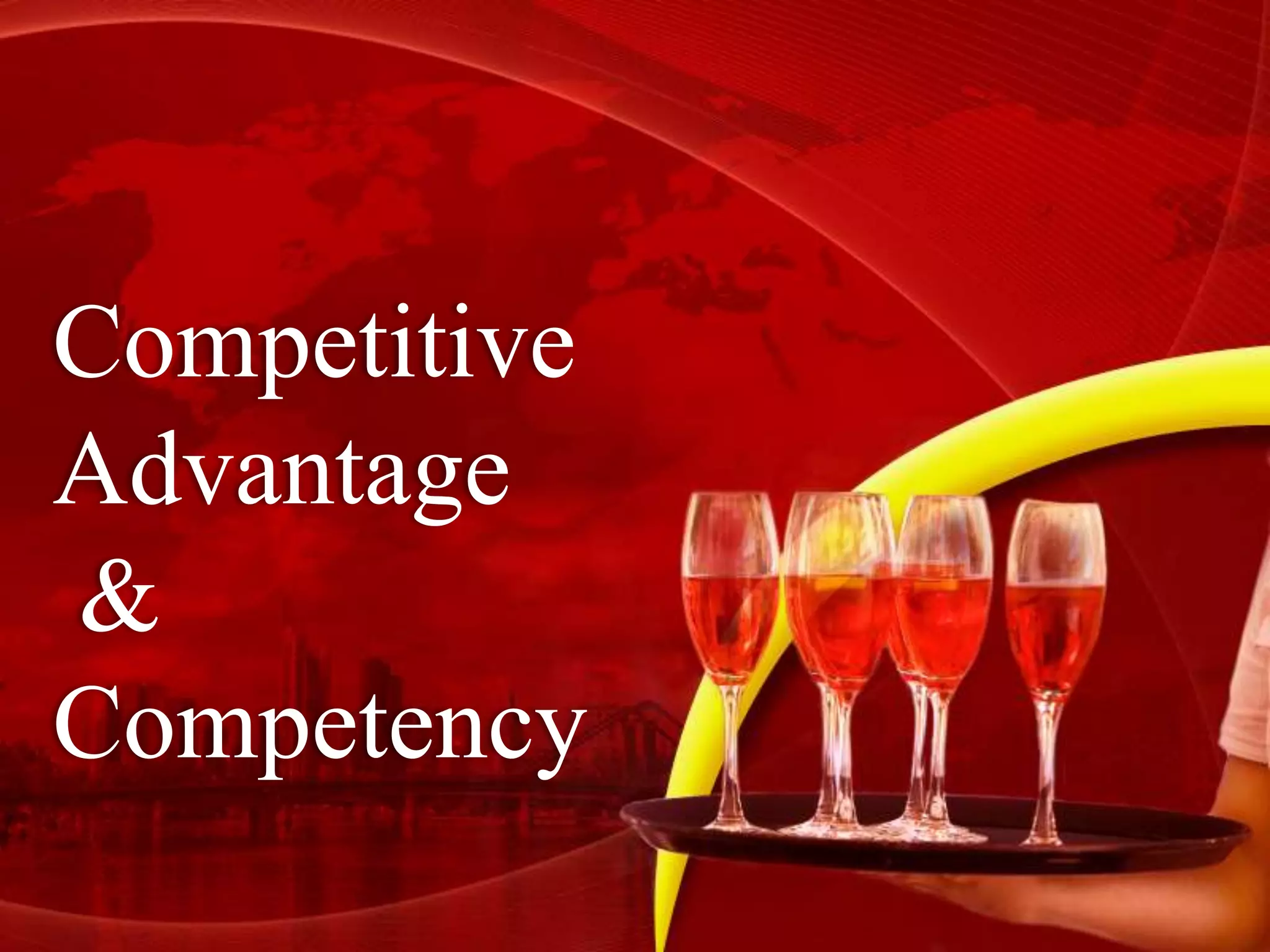 The document outlines the concept of competitive advantage, which refers to the benefits gained by a firm over its competitors through strategies like cost leadership, differentiation, market focus, customer intimacy, and product leadership. It also discusses competencies as the human capabilities that provide competitive advantages, covering various types and clusters such as business knowledge, leadership, and innovation. Ultimately, the framework of competencies supports several HR functions and is crucial for sustaining competitive advantage in the market.