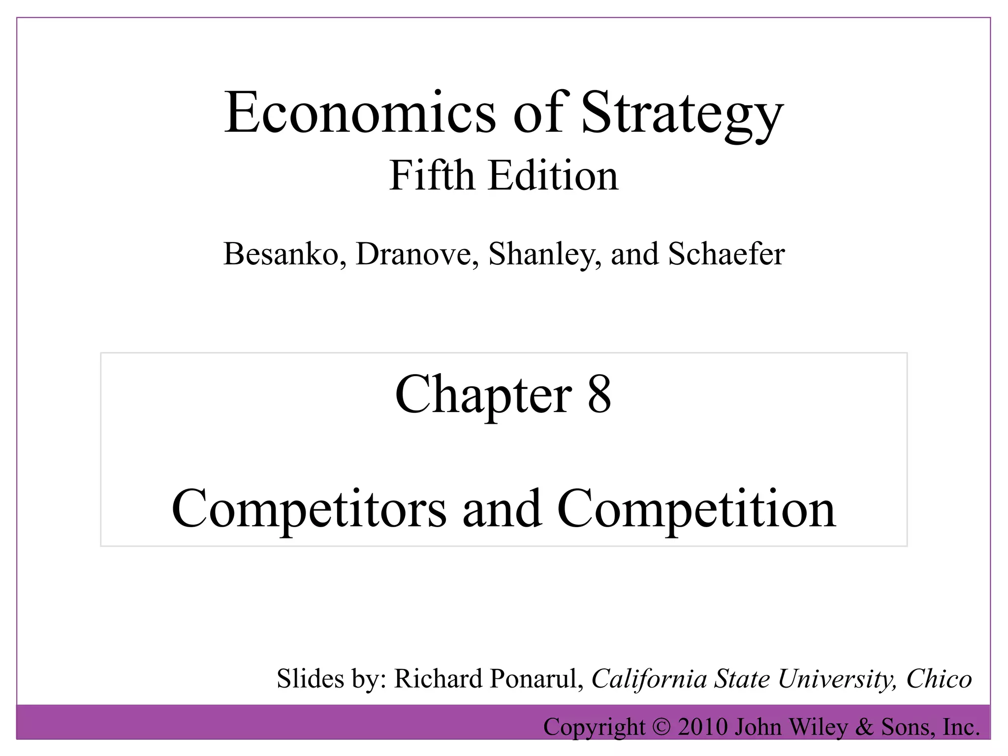 This document summarizes key points from Chapter 8 of the textbook "Economics of Strategy" regarding competitors and competition. It defines direct and indirect competitors and outlines approaches for identifying competitors, including based on product characteristics, use occasions, geography, and empirical methods. It also discusses different market structures like perfect competition, monopoly, monopolistic competition, and oligopoly, and contrasts outcomes under Cournot and Bertrand models of oligopoly.