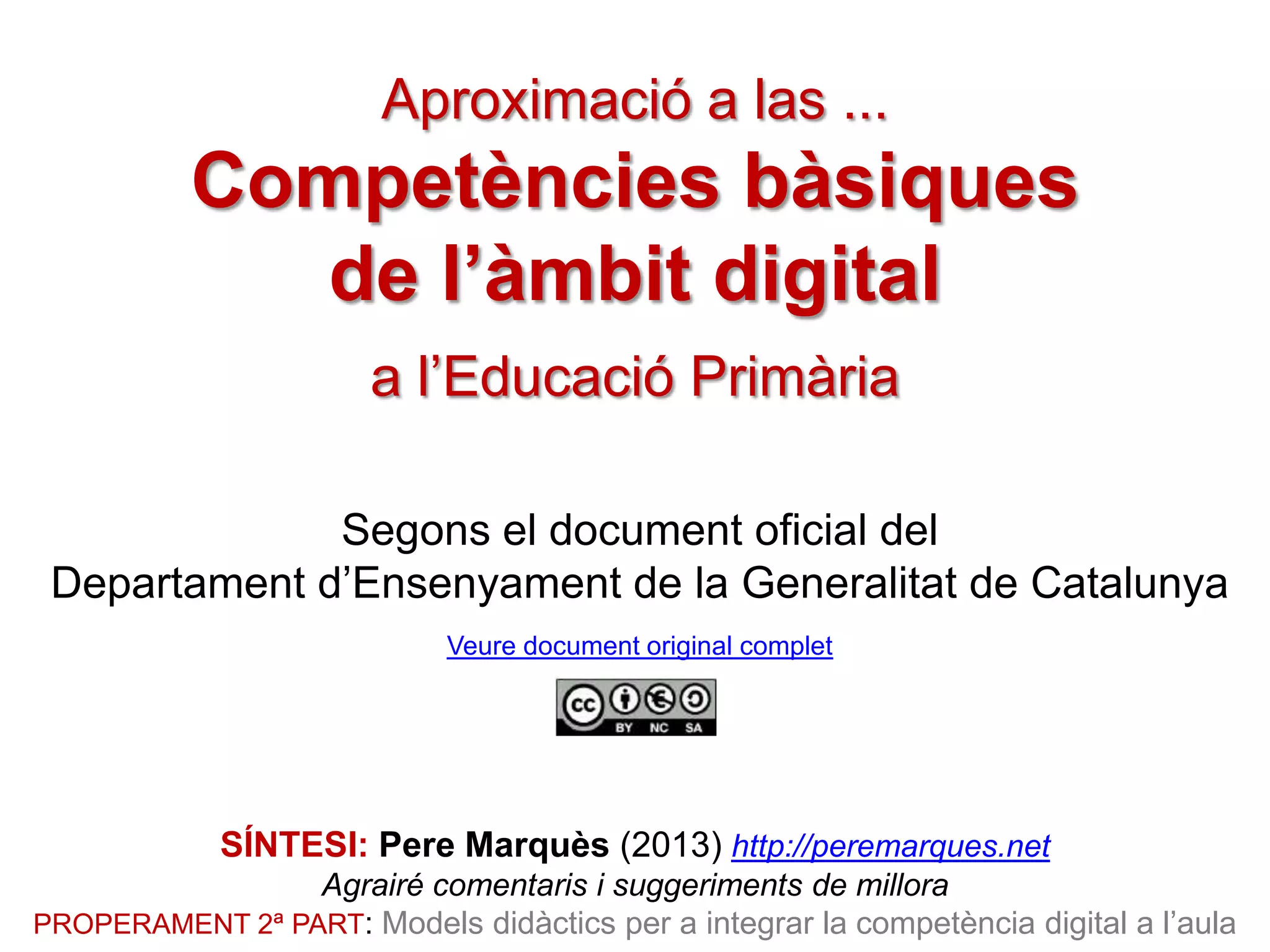 El document “Competènciesbàsiques de l’àmbit digital a l’educació primària” ha