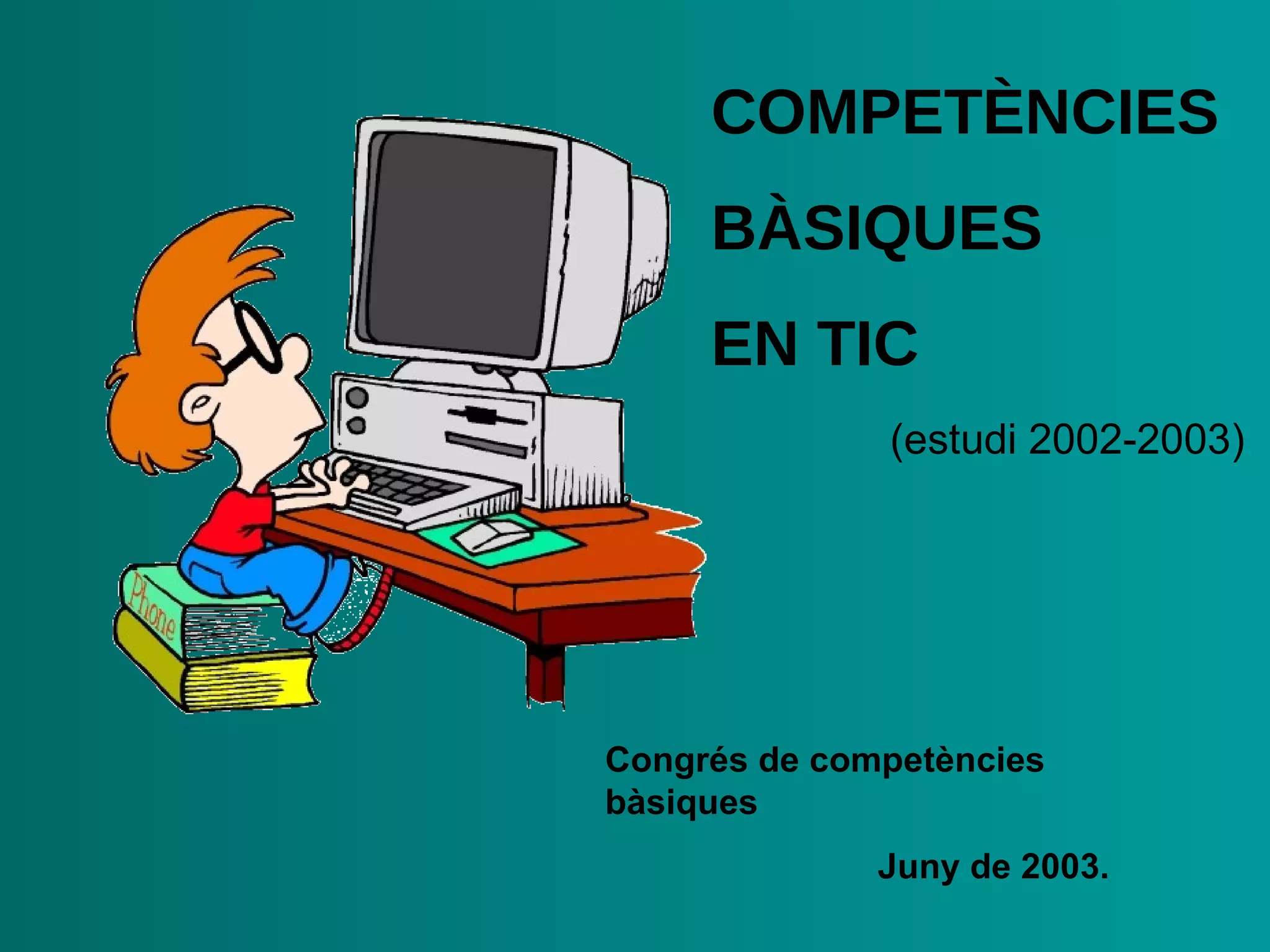 COMPETÈNCIES BÀSIQUES EN TIC (estudi 2002-2003) Congrés de competències bàsiques J uny de 2003 .