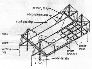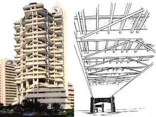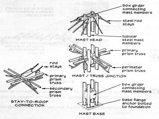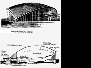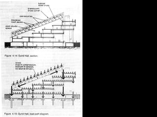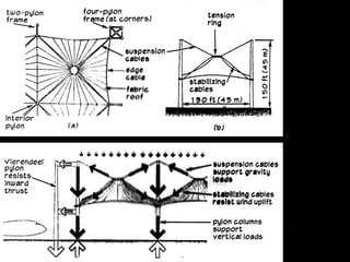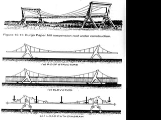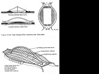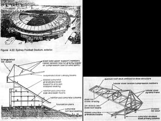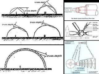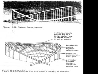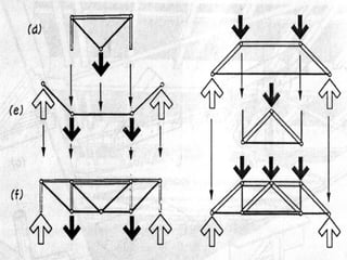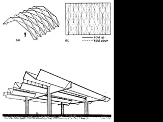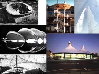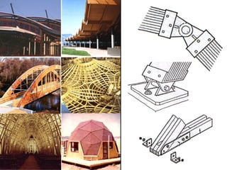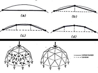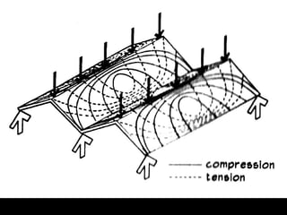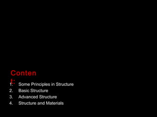 The document discusses the concept of structure, defining it as a recognition of patterns and relationships among entities in various fields such as science, philosophy, and art. It outlines major structural forms—natural and man-made—and emphasizes the objectives of structural design including efficiency, economy, and elegance while considering environmental impact. Additionally, it covers basic and advanced structure types, along with various materials used in construction.