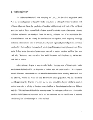 This document discusses the concept of social justice in Islam as articulated by Sayyid Qutb, a significant Islamic thinker and activist. It explores themes of social equality, human rights, and individual responsibility, emphasizing the necessity of adhering to Islamic principles as a solution to contemporary social injustices. Qutb's works argue against the adoption of Western methodologies in addressing social issues, advocating instead for a return to Islamic teachings for achieving true justice.