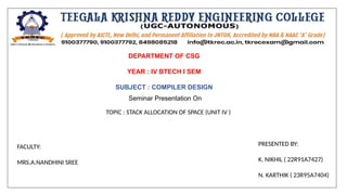 TOPIC : STACK ALLOCATION OF SPACE (UNIT IV )