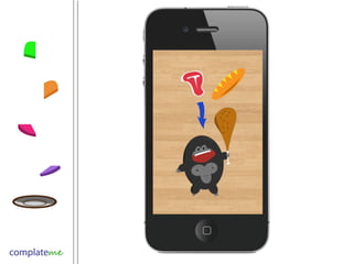 ComplateMe is a new way to track meals and customize diets through an engaging interface to make healthy eating positive. It identifies what is missing from meals, educates with nutritional facts, and queries preferences over time to reward users with badges for unlocking features. The app aims to help American adults and those buying their own groceries by addressing issues with typical diet programs like tedious tracking and inability to sustain users long-term. It sees potential growth through extra features and revenue from selling aggregated user data and partnering with retailers.