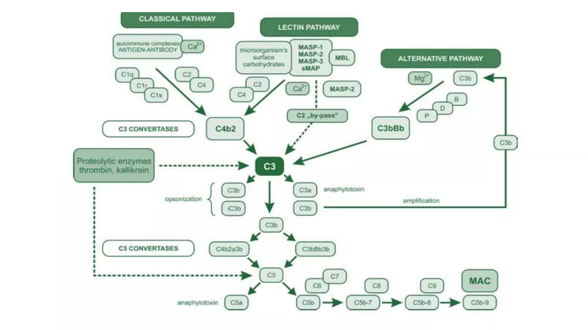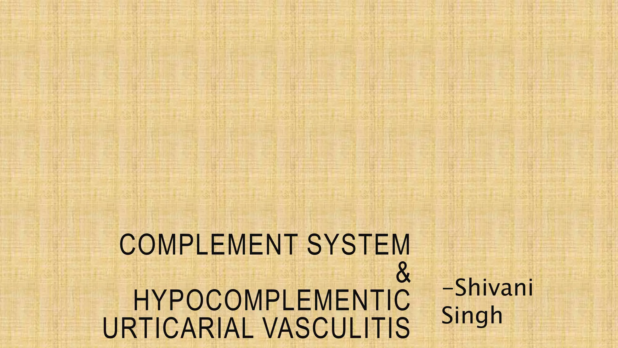 The document discusses the complement system, a crucial component of the immune response that consists of about 40 proteins in plasma, which activate to target pathogens and facilitate inflammation. It details the activation pathways of the complement system, including classical, lectin, and alternative pathways, as well as regulatory mechanisms that prevent excessive activation. Additionally, it covers the condition of hypocomplementic urticarial vasculitis (HUV), its pathophysiology, diagnostic criteria, and organ involvement.