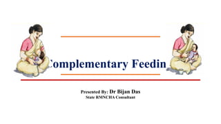 The document emphasizes the importance of complementary feeding starting after six months, alongside continued breastfeeding for up to two years, to ensure proper nutrition for infants and children. It outlines principles for introducing appropriate foods, including preferring homemade options, monitoring child weight, and practicing responsive feeding while avoiding harmful foods and feeding practices. It also stresses the role of parents in promoting positive feeding experiences and the significance of nutrition in child development.