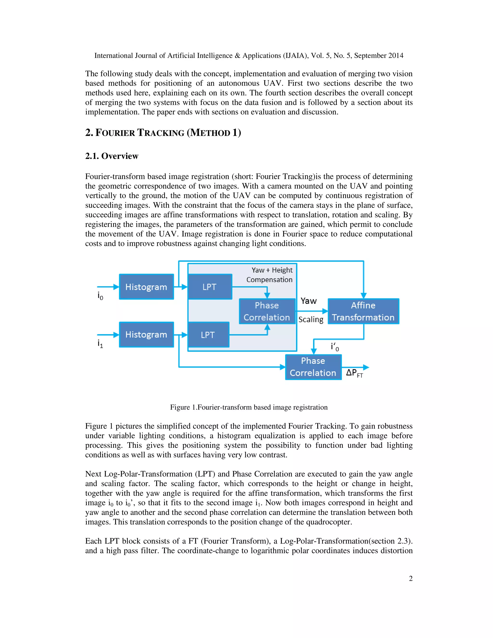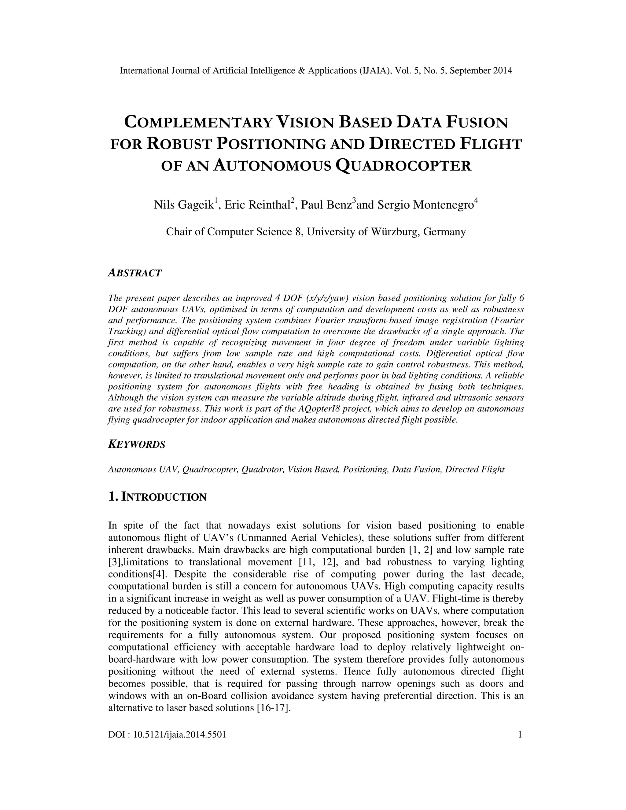 The paper presents a vision-based positioning solution for autonomous quadrocopters, combining Fourier transform-based image registration and differential optical flow computation to enhance computational efficiency and robustness. The fusion of these techniques allows the quadcopter to achieve reliable positioning during flight even in varying lighting conditions. This research is part of the AQopteri8 project, aimed at enabling autonomous directed flight in indoor environments.