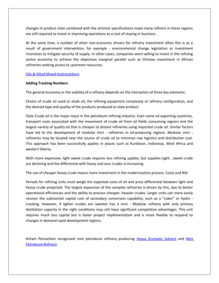 Modular mini refineries are increasingly favored for oil production in remote areas due to their flexibility, relatively low cost, and quick construction time. Despite a challenging refining environment with reduced margins and regulatory barriers in developed regions, there remains a significant demand for investment in refining capabilities, particularly in Asia and the Middle East. These mini refineries, strategically located near crude oil sources, offer operational efficiencies and can adapt to changing local demand dynamics.