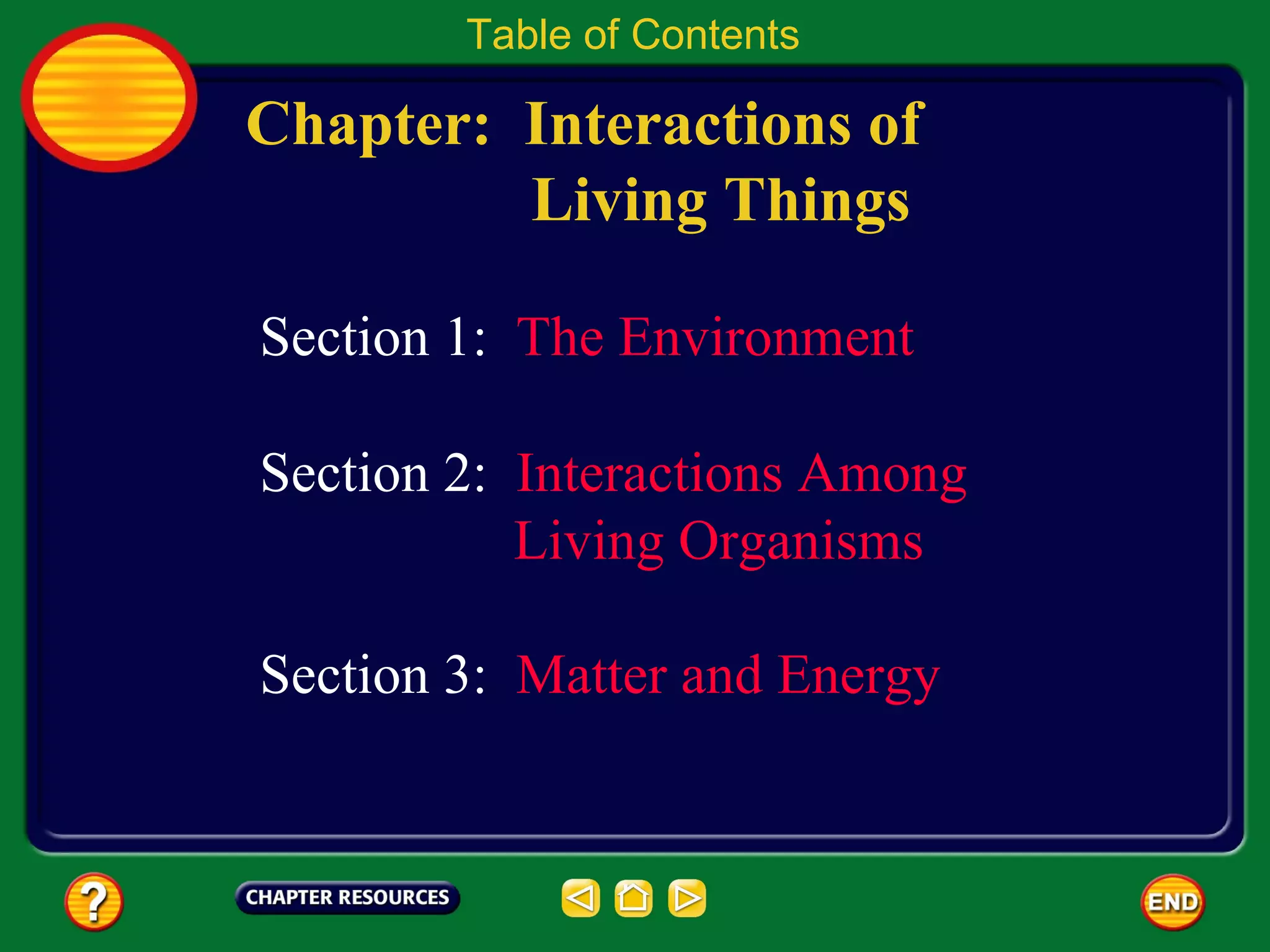 Ecology is the study of how living things interact with each other and their environment. There are biotic (living) factors like plants and animals, and abiotic (non-living) factors like water, sunlight, temperature, air, and soil. All living things depend on and influence each other and their surroundings. The environment and its living and non-living components are organized into levels from cells to organisms to populations to communities and ecosystems.