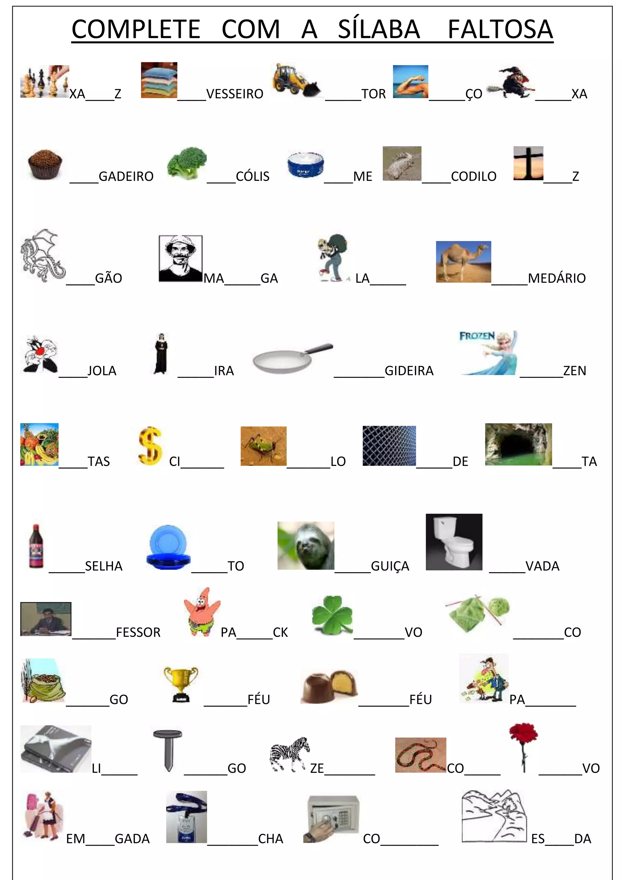 The document appears to be a poem written in Portuguese with missing syllables throughout. It discusses a professor named Patrick who taught something to a student named Ze. The student then went on to do something with a group of people.