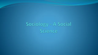 Sociology is characterized as an independent science that studies society rather than individuals. It analyzes social processes and structures from a sociological perspective rather than a psychological one. Sociology deals with abstract concepts and generalizations rather than concrete or normative disciplines. It aims to understand social forms, groups, and larger structures.