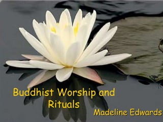 Buddhism originated 2500 years ago when Siddhartha Gautama founded the religion. Key Buddhist beliefs include not believing in God, following the teachings of Buddha to find peace, and meditating. Buddhists believe in concepts like anatta, anicca, duhka, and karma. The Four Noble Truths explain duhka and the Eightfold Path as the way to end suffering. Important locations in Buddhism's history include Bodh Gaya, where Buddha achieved enlightenment, Lumbini where he was born, and Kushinagara where he died at age 80.