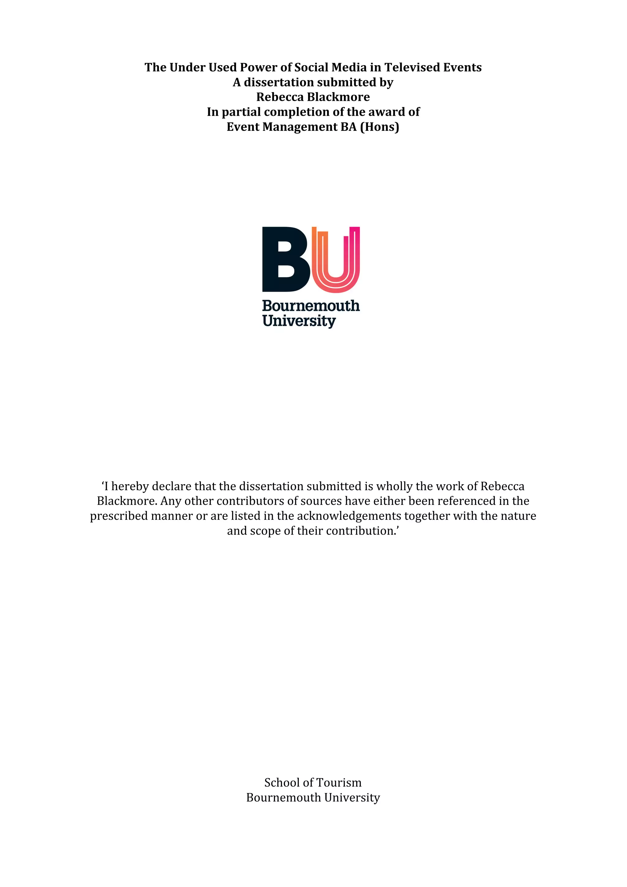 This dissertation examines the underutilized potential of social media in televised events. The author conducted an online analysis of 3 televised events on Facebook, Twitter, and YouTube to compare their social media integration. Additionally, an online Facebook focus group was used to explore perceptions of social media engagement in televised events. The results found that televised events have underutilized the marketing potential of social media, especially YouTube. The content of the event impacted social media engagement. Celebrity presenters were also found to influence the reach of events on social media. The study recommends further investigating the role celebrity presenters can play in extending the engagement of televised events on social media platforms.