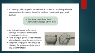 The useof coves (placed with a No. 1⁄4 bur) to provide