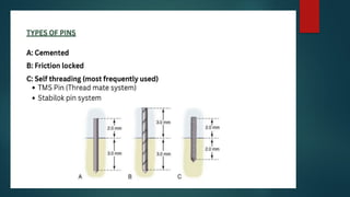 Placing pins in a nonparallel manner increases their retention.Bending pins