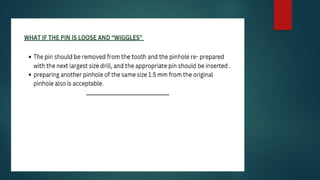 further treatment rendered; (2) the pin can be cut off flush with the tooth