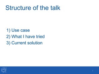 This document summarizes the speaker's experience trying different technologies to write monitoring data from cgroups to InfluxDB for Grafana visualization. The speaker initially tried using CAdvisor, collectd, and Flume together but found the solution too complex. They realized these additional technologies were unnecessary and instead wrote a simpler Python script, CGroups Simple, to read cgroup data directly and write directly to InfluxDB's HTTP API. This 1200 line script provides a simpler and more maintainable solution for their use case of enriching cgroup data with job IDs and writing to InfluxDB.
