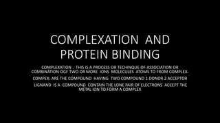 COMPLEXATION. THIS IS A PROCESS OR TECHINQUE OF ASSOCIATION OR