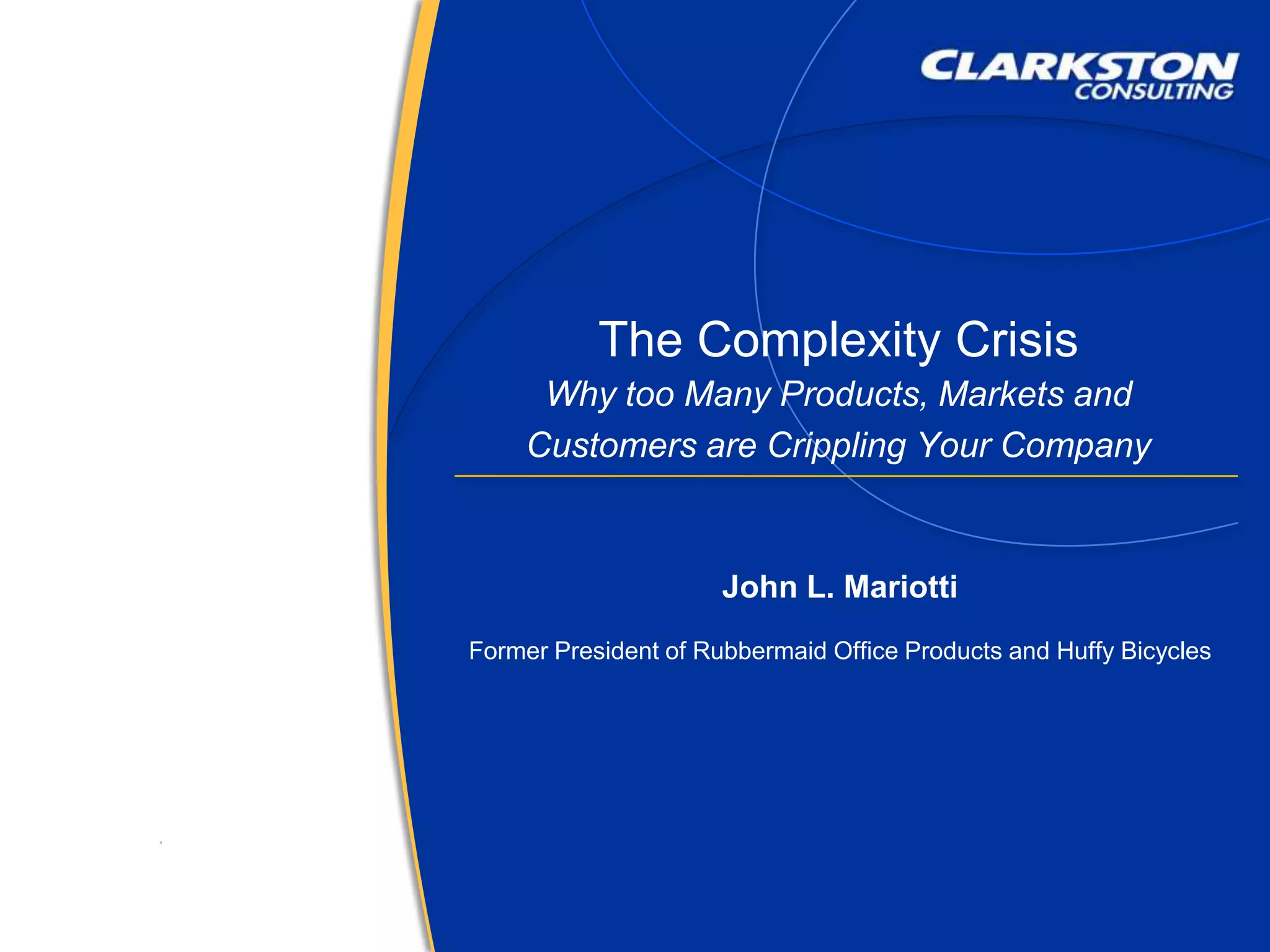 This document discusses the problem of complexity in businesses and provides strategies for reducing complexity. It defines a "Complexity Factor" metric to measure complexity based on products, markets, facilities, employees, and other factors. Case studies of Motorola show how complexity was reduced by standardizing parts and processes. The document provides a step-by-step approach to analyzing complexity sources like customers, suppliers, and products based on the 80/20 rule. It also outlines how to assign costs to complexity sources and control complexity over time.