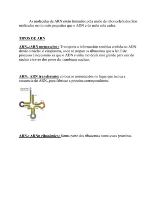ARNm:ARN mensaxeiro : Transporta a información xenética contida no ADN