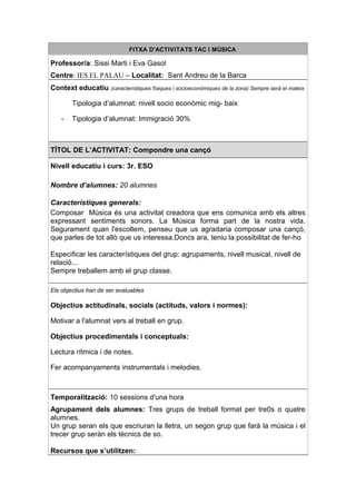 TÍTOL DE L’ACTIVITAT: Compondre una cançó
